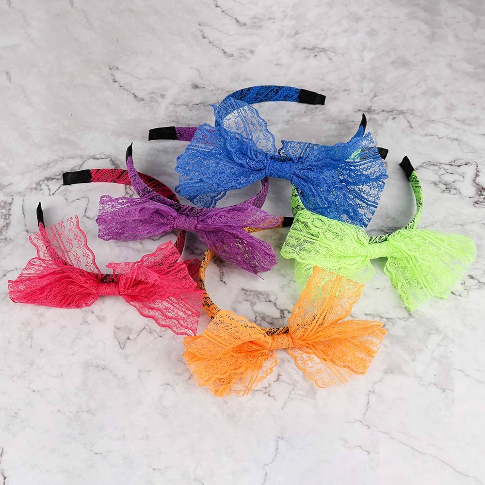 Amazon Com Wbcbec 5 Pieces 80 S Lace Headband Costume Accessories For 80s Theme Party No Headache Neon Lace Bow Headband Clothing Shoes Jewelry